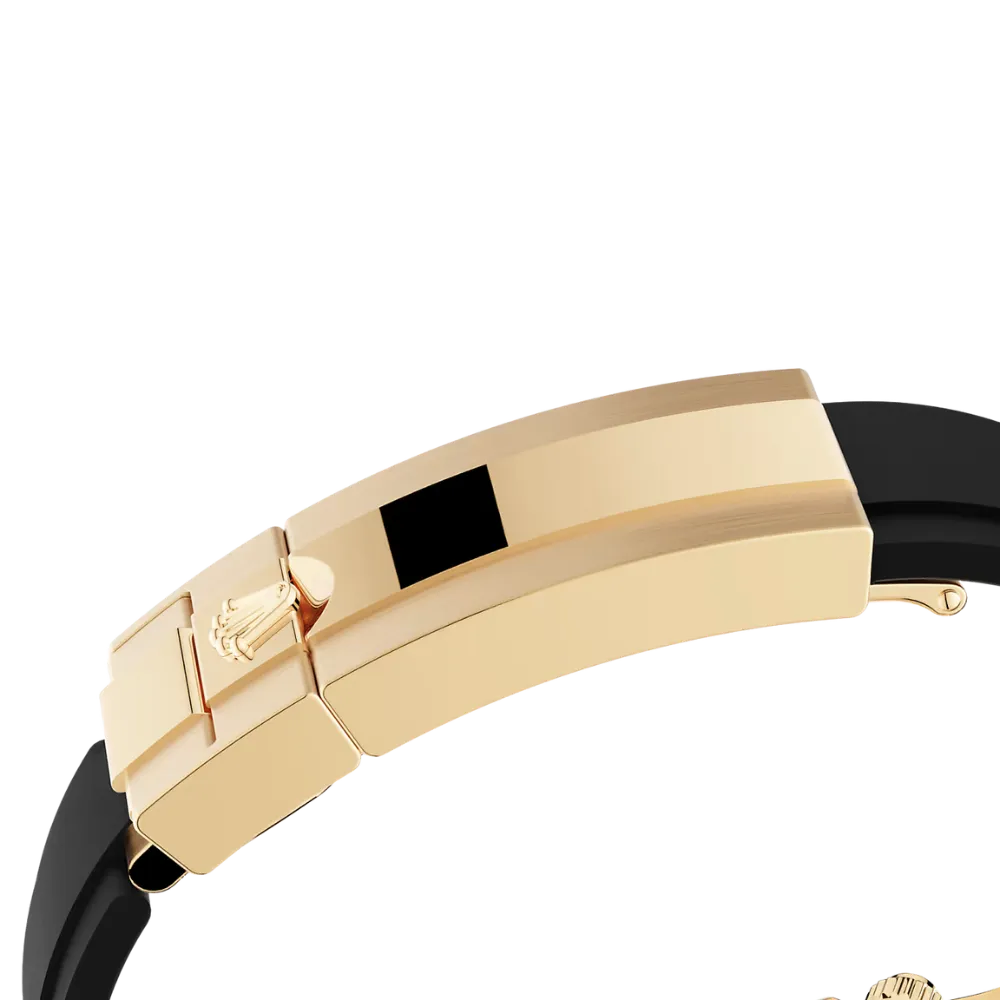 - Case: 18K yellow gold Oyster case, 40 mm, monobloc middle case with screw-down caseback and Triplock winding crown.