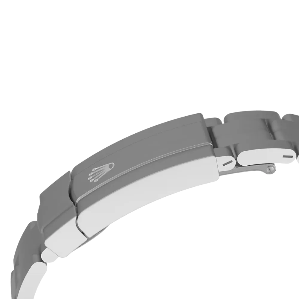 Bracelet: Iconic Oyster bracelet (three-piece solid links) in Oystersteel; Folding Oysterclasp with Easylink 5 mm comfort extension.