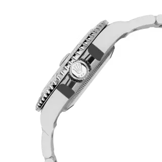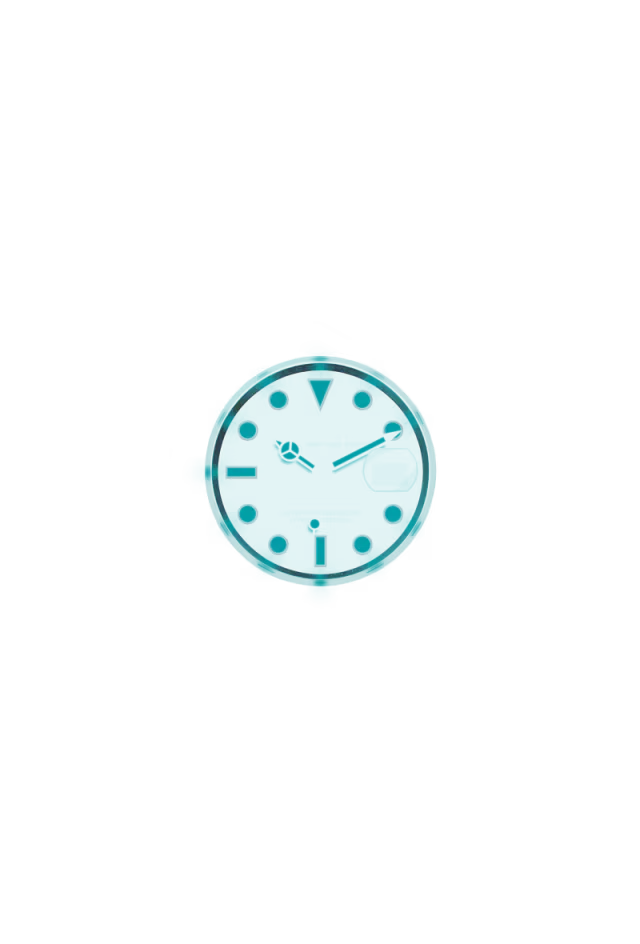 Dial: Rhodium grey with luminous hour markers, aqua blue seconds hand